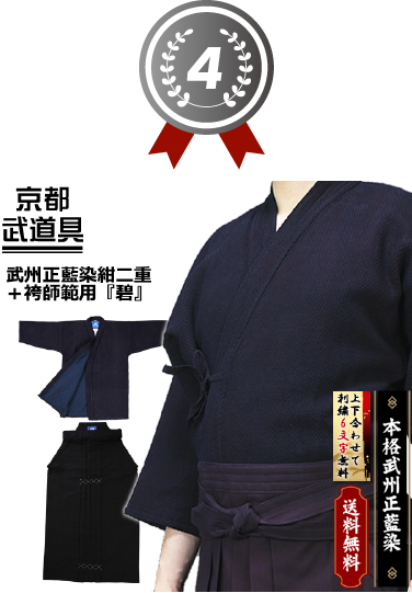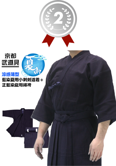 化学染料で染められた生地ですので、藍染特有の「風合い」は無く、汗もあまり吸収しません。ポリエステル剣道着は合宿や夏の稽古で好んで使われています。
