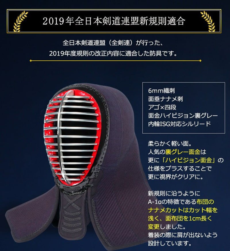 剣道 防具セット 全剣連新規則対応 『A-1α MARK-2』 6mmナナメ刺・軽量防具
