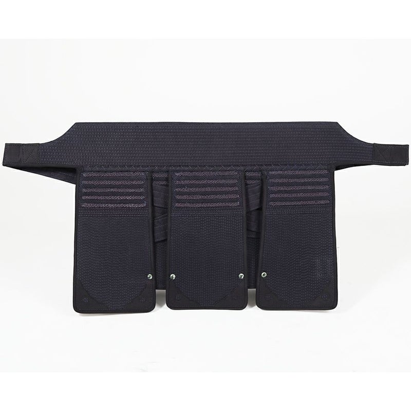 また、竹刀の上げ下ろしの時に腕とこすれる面垂の前の部分や、「突き」を受ける突き垂には汗や摩擦に強い人工皮革(クラリーノ革)を使用しています。