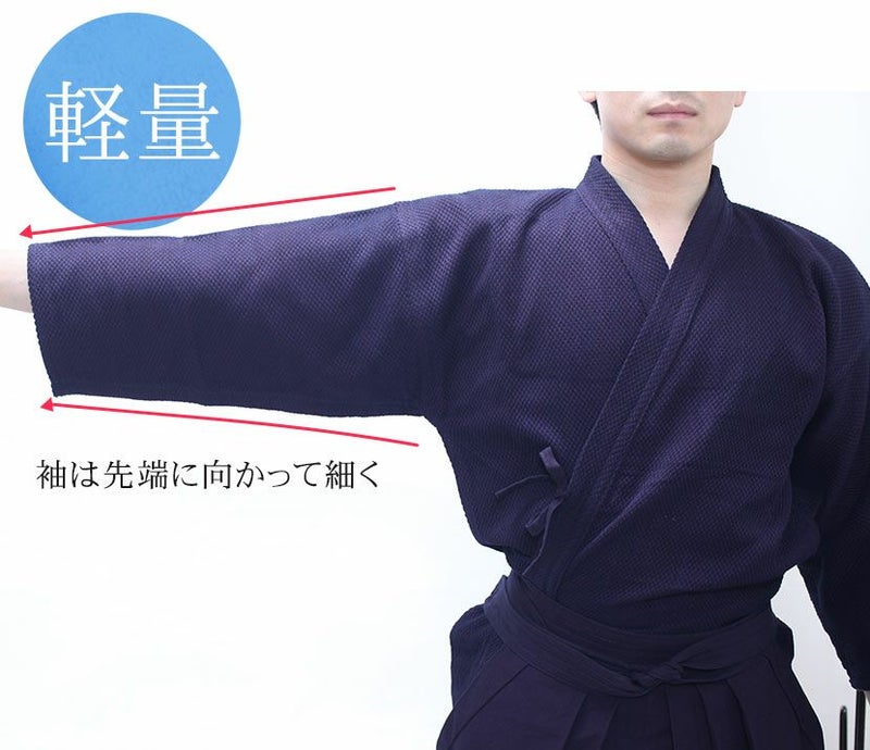 袖は先端に向かって細くなっているので、竹刀を振る際のバタつきや