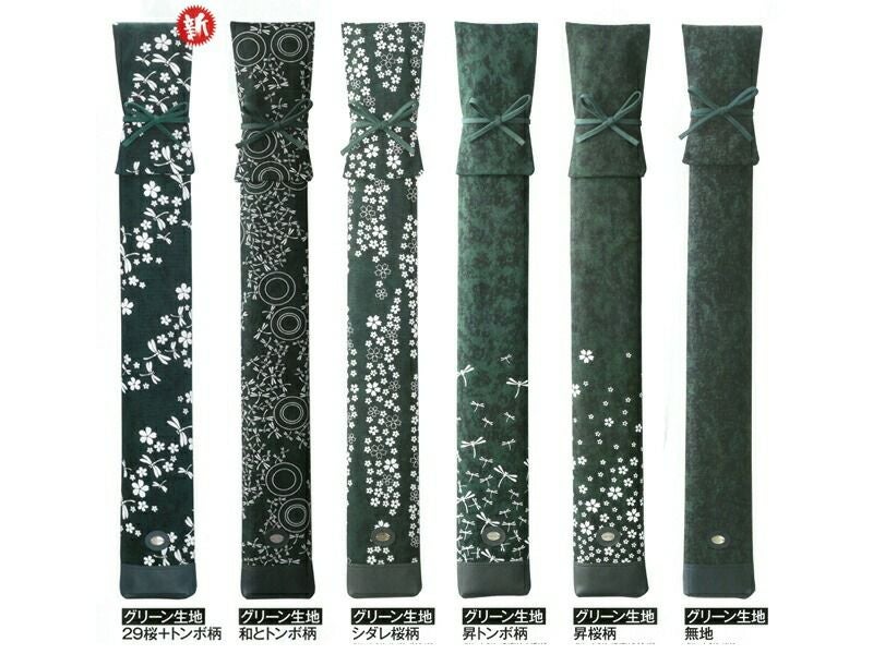 グリーン生地竹刀袋は黄色・緑郡の刺繍色が対応しています。