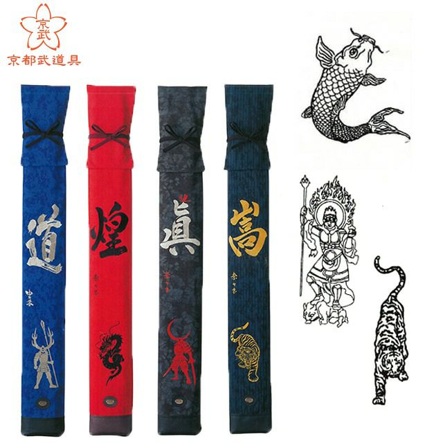 【縁起物刺繍について】 縁起物を竹刀袋に! 大きさは職人指定とさせていただきます。 【刺繍色について】 文字色と同系色または無彩色(白以外)からお選びください。 異なる色系統の組み合わせはお受けできないこととなっております。 他にも、桜刺繍・トンボ刺繍・勝ち付けトンボ刺繍なども御一緒にお入れすることも可能でございます。