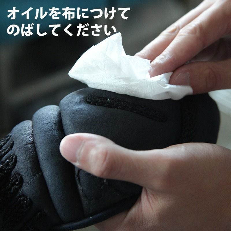 鹿革オイルは革に適度な柔軟性・通気性・補強効果を与え、型くずれを防止する皮革専用のオイルです。