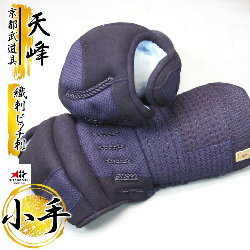 織刺生地と武州正藍染の紺反で作られている「天峰」です。 シンプルなデザインで飽きない作りになっています。 織刺生地は使い込んで色が落ちてくると良い風合いになります。 使い込むほど味が出る「通」好みの防具です。 使い込むほど良くなるこの「峰」には「試合用」「稽古用」といった使い分けをされることを考えておりません。 試合でも稽古でも常にご使用頂くことを基本理念として作られています。 工場内でも峰を作れる職人は多くありません。 限られた職人が素材、技術にこだわって作り上げる逸品です。 織刺奴の小手頭で通気性が良い小手です。 手の内は白鹿革でしっとりと手にフィットします。