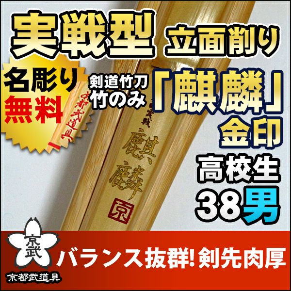 実戦型の竹刀に立面削り加工を施した剣道竹刀です。 立面削りとは剣先の幅を細くし、厚みを持たせた削り方です。 バランスがよくなり、耐久性も上がります。 実戦型の中でもバランスのよい竹刀で、試合や審査にお勧めの剣道竹刀です。 38(高校生)男子用の竹のみの販売です。 *複数購入頂きますとお時間を少々頂きますが 竹の節のあったものをお選びしてお送りさせていただきますので 竹が痛みましたときの組み換えにも便利です。