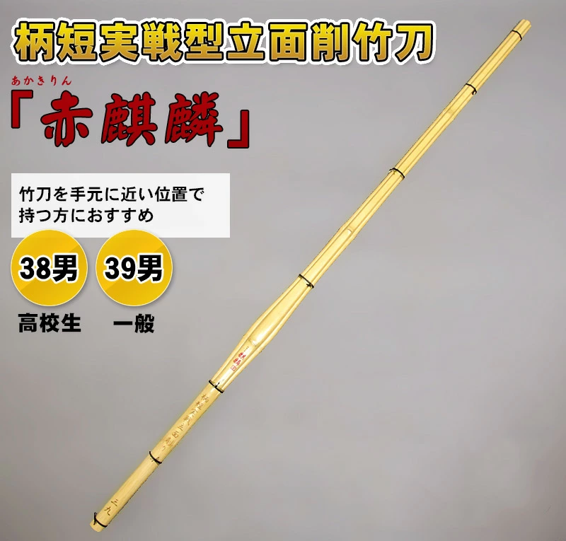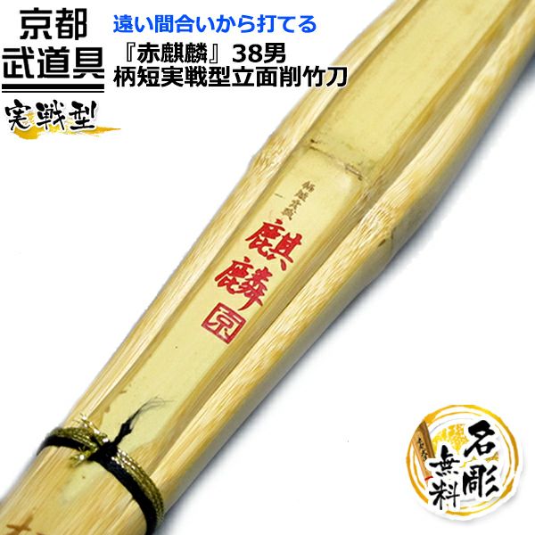 『赤麒麟』柄短実戦型立面削竹刀 38