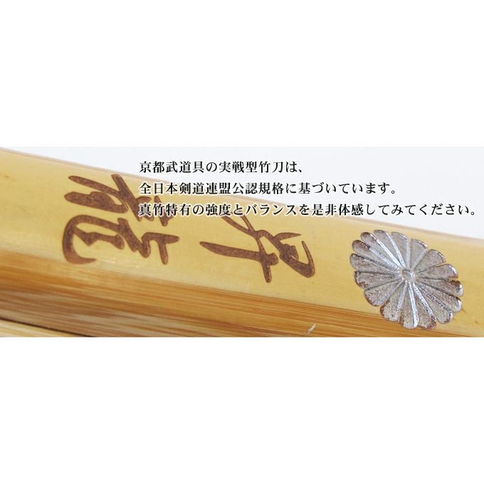 柄が太く、大きく胴が張っており、剣先が細めの実戦型竹刀です。 手元に重心を置いておりますので、先が軽いバランスで仕上がっております。 左手握り:約27mm