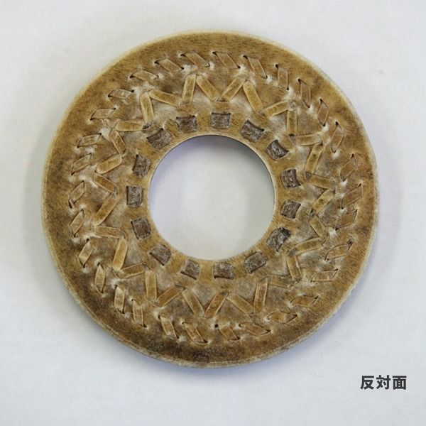 直径9cmの革鍔に三筋の縫い合わせをした革鍔です。