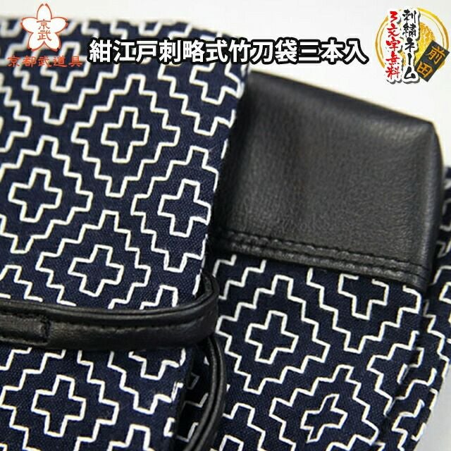 【剣道 竹刀袋】紺江戸刺略式竹刀袋三本入