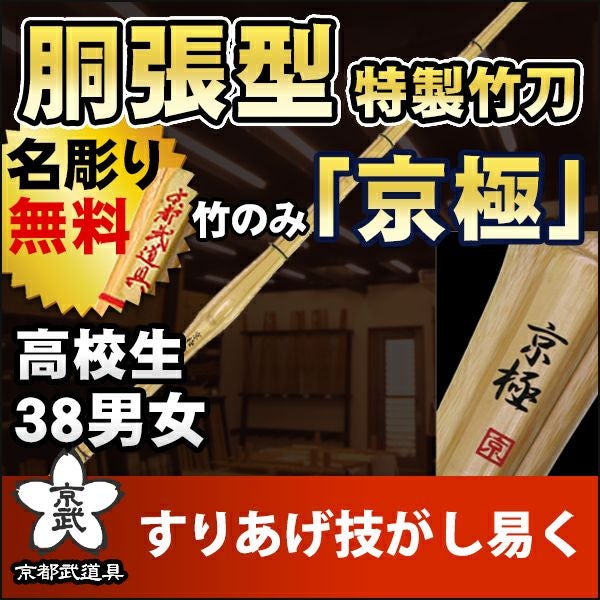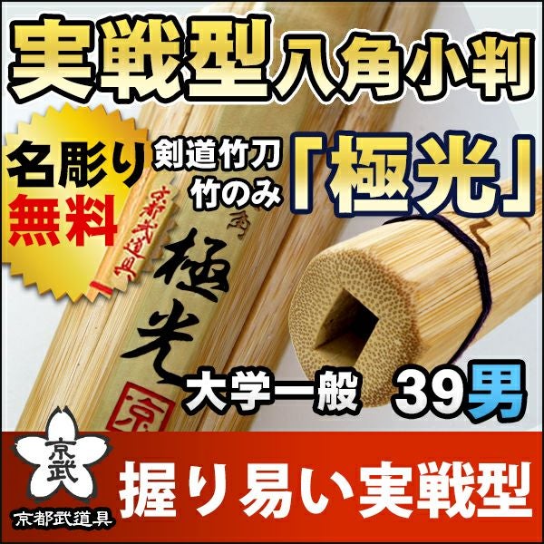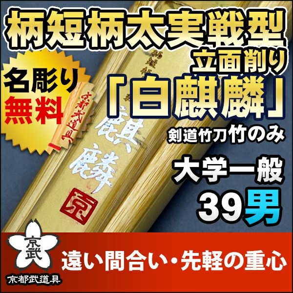 他の画像を見る 【玄人好みの見た目と使用感】 バイオテック上製古刀型 竹刀 「京都吉祥(きょうときっしょう)」39男(25mm・28mm)【SSPシール貼付・男子用】 当店特別価格 ¥ 4,950 税込 詳細を見る お気に入りに登録する